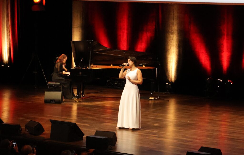 La soirée a été mise en musique par Camélia Jordana, désormais habituée du festival, qui a interprété « Parce que » d’Aznavour puis a entonné à capella « We shall overcome » accompagnée de spectateurs.