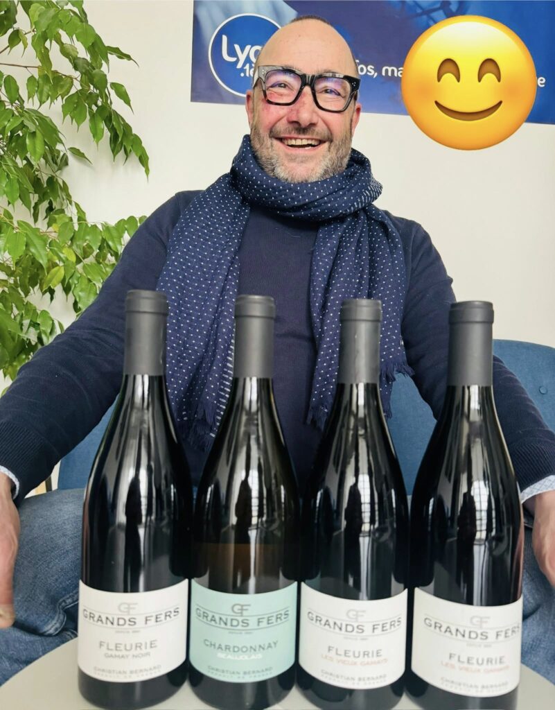 C’est avec Christian Bernard vigneron du domaine « Grands des Fers » à Fleurie qu’il partage l’amour de la bonne cuisine et du bon vin.