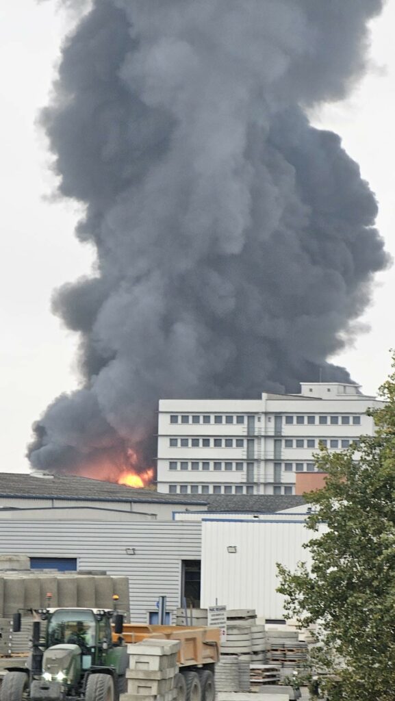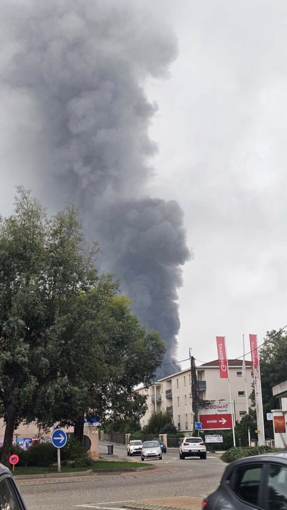 Un immense panache de fumée est visible au dessus de Villefranche-sur-Saône, ce mardi.