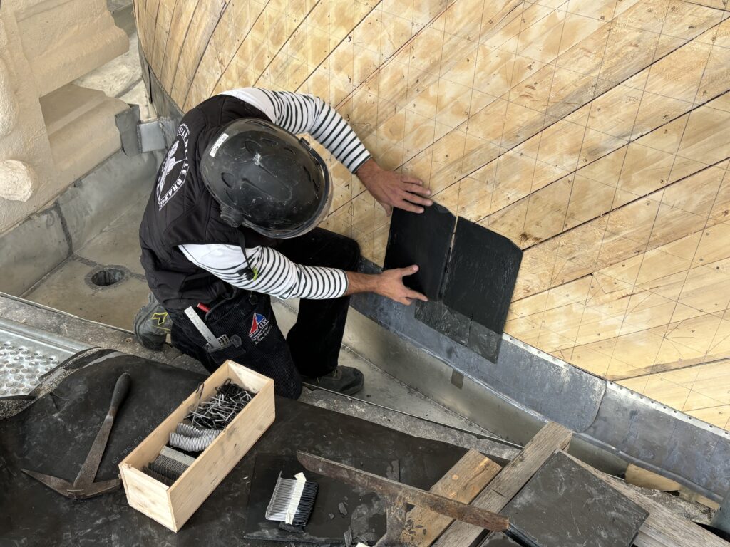 Au total, 13 000 ardoises ont été taillées une à une et reposées sur la charpente, redonnant au dôme son apparence d’origine.